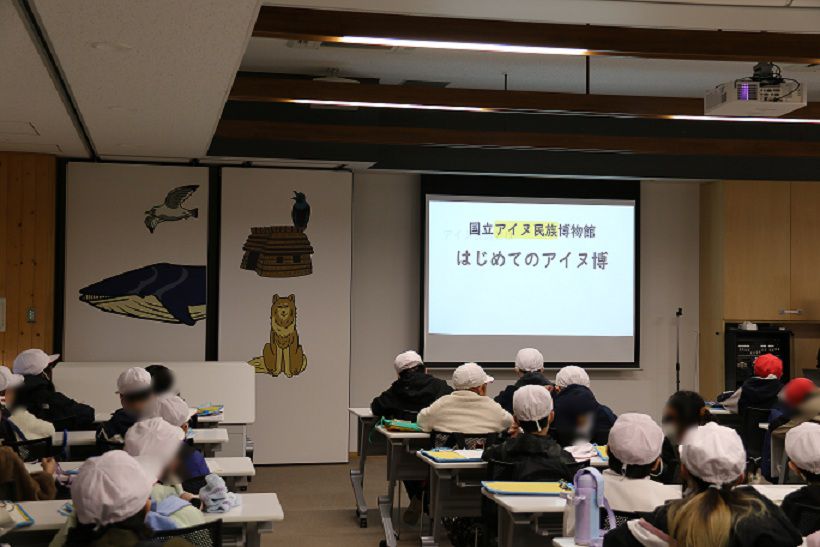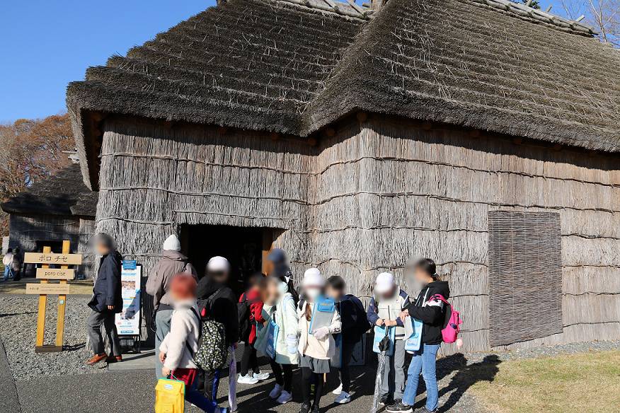 11月7日(金)に4年生が白老町にあるウポポイ(民族共生象徴空間)に見学に行きました。子どもたちはそれぞれのグループに分かれて、施設や展示物を興味深く見入っていました。事前学習でアイヌの伝統的な文化や歴史を勉強してきましたが、本物を見ることでより多くの学びがあったようです。伝統芸能鑑賞では雷の効果音に驚きつつ舞踏やムックリ演奏などを鑑賞し、アイヌの世界観や自然観に触れていました。また、屋外では伝統的コタン(チセ)などの見学やアイヌの遊びを体験し楽しんでいました。4年生は今回の見学学習の課題『マナーを守って見学し、地域の伝統文化への感謝の気持ちをもとう』を意識し活動出来ていたようです。多くのアイヌ民族の文化と実際に触れ合い貴重な体験が出来たことで子どもたちは学びを深めたようです。