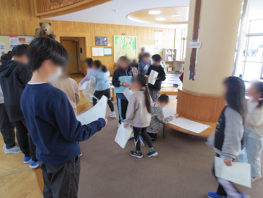 1月16日(金)の中休みに委員会活動で文化委員会が企画したクイズスタンプラリーを学級閉鎖で延期になっていた2年生と5年生の児童が行いました。子どもたちはスタンプラリーの紙を持って、委員会の児童が考えたクイズが出題されている場所に行き、回答したら文化委員のスタンプをもらう企画です。幌別小学校にちなんだクイズが出題され、回答する子どもたちは楽しそうに委員会の企画に参加していました。子どもたちの考えたクイズはなかなか難しかったようです。