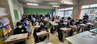 | 10月に行われた鷲別中体験入学では授業参観やオリエンテーションといった内容でしたが、2回目の今回は「授業体験」ということで、中学校の先生に直接教わる体験をしてきました。教科は数学と英語でした。中学校の教室で中学校の先生に教わり、はじめは緊張していましたが、徐々に慣れてきて、中学校入学が楽しみとなる気持ちが持てたようです。 また保護者の方々も4名ほど参観に来られていました。 | |||