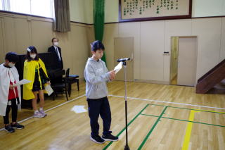 | 11月の全校朝会が行われました。校長先生のお話では、学習発表会に向け、友だちと協力してしっかり取り組みましょうと話されました。また、なかよし会の図書委員会と学級委員会から連絡がありました。最後に生徒指導担当の先生から11月からの帰宅時刻と11月の生活目標について説明がありました。11月も元気にそして落ち着いて、学校生活を送りましょう。 | |||
