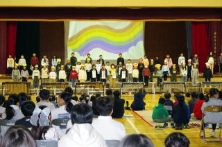 | 学習発表会の児童公開が行われました。各学年とも1回目の本番ということで、緊張の中にも、これまで頑張って練習してきた成果を見せようと、やる気満々で発表に臨みました。発表している児童だけでなく、見ている児童も、集中して観覧していました。また、幼小連携事業として、リリー文化幼稚園の年長組の園児さんが来校し、5・6年生の発表を見ていきました。さあ、週末土曜日には、いよいよお家の人に見ていただく保護者公開、もうひと踏ん張り頑張りましょう! | |||