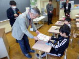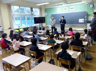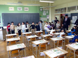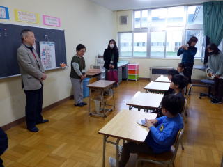 | 共同募金の意義を周知するための取り組みとして、登別市共同募金会から登別市内の小学1年生を対象に入学祝い品をプレゼントしていただきました。この日、本校に4人の方が来校し、直接1年生に手渡ししていただきました。ありがとうございました。 | |||