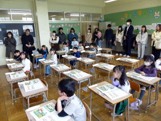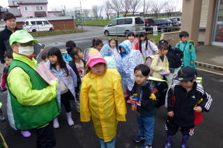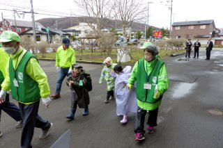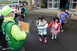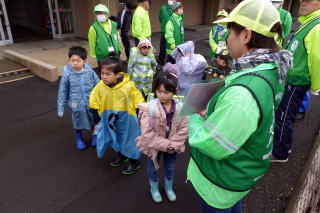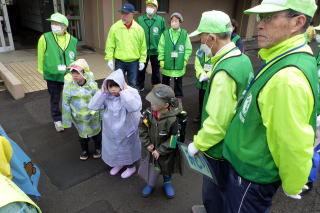 | 1・2年生の下校時の交通安全指導と引率をしてくださる地域ボランティア「せわずき・せわやき隊」による「町会下校指導」の今年度第1回目が行われました。今年は1、2年生の日課のちがいから、この日は1年生を対象に行われました。1回目ということで最初に教頭先生から、気を付けることなどの話があり、1年生みんなで「よろしくお願いします!」とボランティアの方々へご挨拶をしました。その後、班ごとに下校しました。今年度も来年3月までの計18回、お世話になります。よろしくお願いします。 | |||