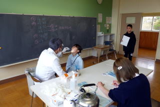 | 全校児童の歯科検診が行われました。4人の歯医者さんに来ていただき、一人一人の歯の状態を調べてもらいました。6年生は合わせて「よい歯の表彰」の対象となるか診ていただき、15人の児童が対象となりました。後日、検査結果がご家庭に知らされますが、その結果をしっかりご覧いただき、すぐに治療したり、毎日の歯のお手入れをしっかり行ったりしますようお願いいたします。 | |||