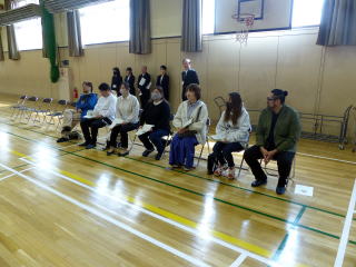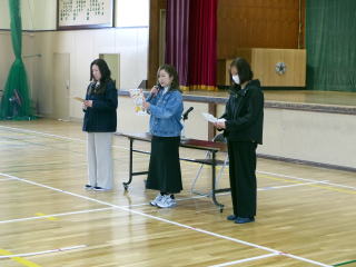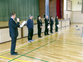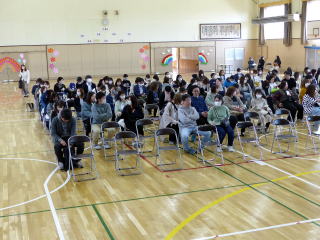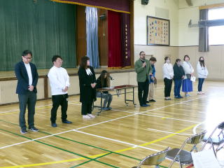 | この4月に本校に赴任した先生方との出会いの式「着任式」が行われました。今年度は8名の教職員をお迎えしました。先生方から挨拶をいただき、子どもたちからも歓声が上がっておりました。児童を代表してなかよし会6年の代表児童から歓迎の言葉を送られ、先生方も皆さんとともに送る学校生活が楽しみのようでした。 | |||