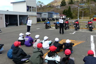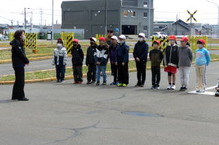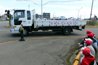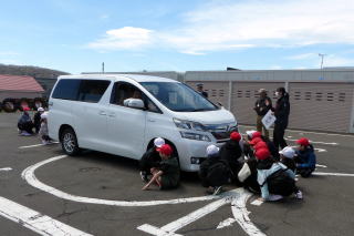 | 先日の1・2年生に続き、この日は4・6年生の交通安全教室が行われました。4・6年生は昨年度に引き続き、室蘭総合自動車学校にご協力をいただき、自動車学校の教習コース内で、トラックなど大型車の運転手からの死角、停車中の車のドアの急な開閉、大型車の内輪差について、停車している車の陰からの横断の危険さについて学習しました。また、室蘭警察署交通課の方から、登別市内でも起きている児童の交通事故の状況や、交通安全で気を付けることについて説明していただきました。自動車学校の皆様、室蘭警察署の皆様、とても貴重な学習の場を提供していただき、ありがとうございました。 | |||