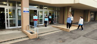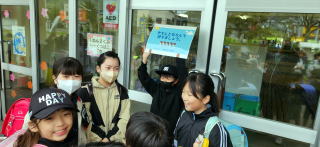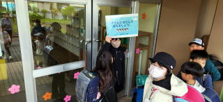 | 若草小の児童会「なかよし会」の企画で、毎月5のつく日を「あいさつ運動DAY」とし、児童玄関前になかよし会メンバーが立って、あいさつ運動を行う取組の第1回目が行われました。 なかよし会のメンバーから「おはようございます!」と元気に声をかけられて、登校してきた児童も元気に挨拶をしていました。 |