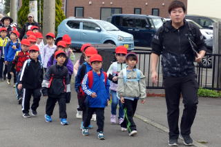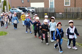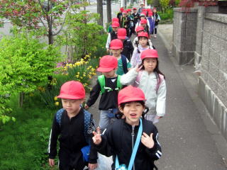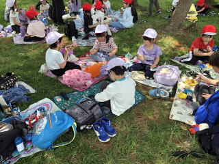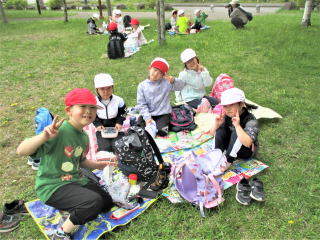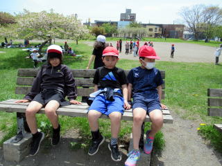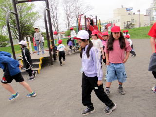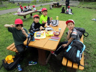 | 1~4年生の遠足が行われました。昨年より1か月早まり、天候や気温が心配されましたが、寒くもなく暑くもなくちょうどよい遠足日和となりました。1年生は室蘭高砂1丁目公園、2年生は富岸公園、3年生は室蘭中島公園、4年生は亀田記念公園とそれぞれの目的地をめざして歩きました。到着後は歩いた疲れも見せず、元気に遊びまわりました。お昼にはお楽しみのお弁当とおやつタイム。おいしくいただきました。帰りはやや疲れが見られ、歩くペースが遅れてきた子もおりましたが、しっかり帰ってくることができました。 |