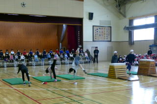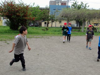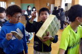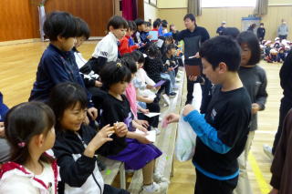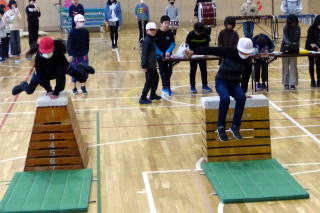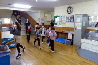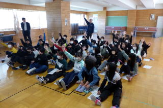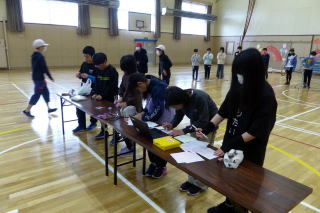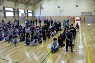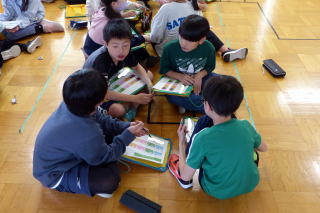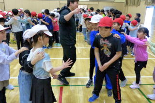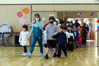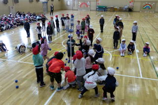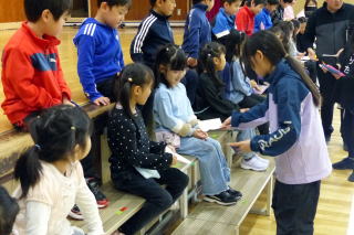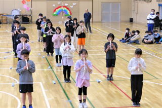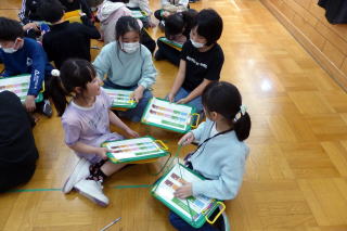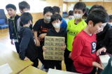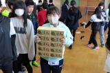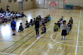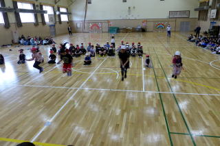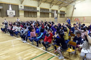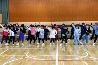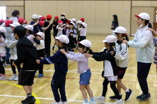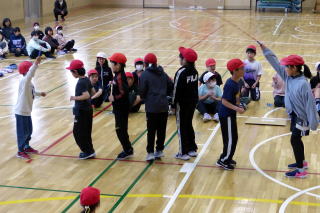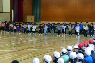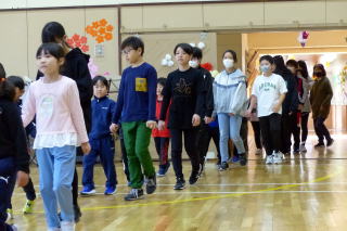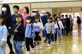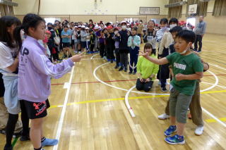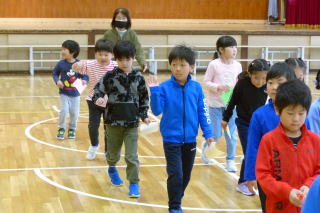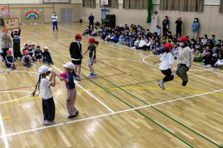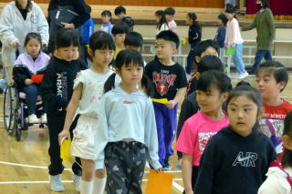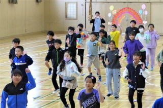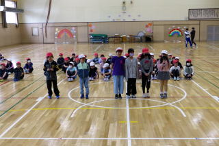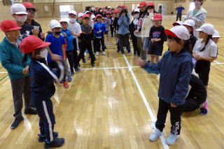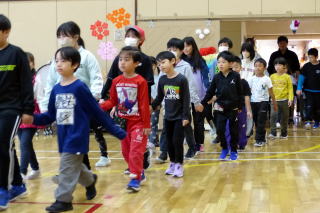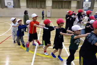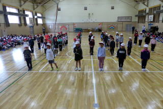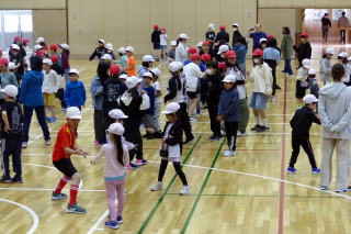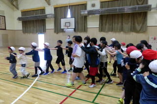 | なかよし会が違う学年の子と楽しく触れ合う取り組みとして「異学年交流」を実施しました。休み時間に3つの学年が「じゃんけん列車」のゲームをして楽しみました。中休みは「1・3・6年生」じゃんけんをして負けたら勝った子の後ろについていき、どんどん列が長くなっていきました。最後に勝ったのは、1年生の女の子でした。昼休みは「2・4・5年生」こちらは最後に5年2組同士の決戦となりました。楽しく触れ合うことができました。 |
