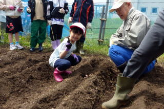 | 5月27日(火)1・2年生活科「ふれあい農園ジャガイモの植えつけ」 |