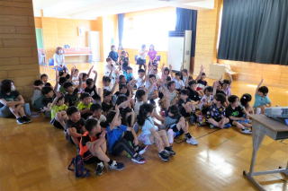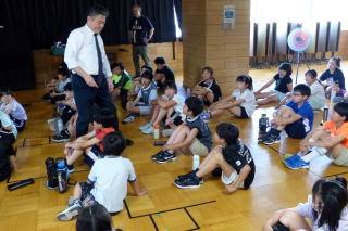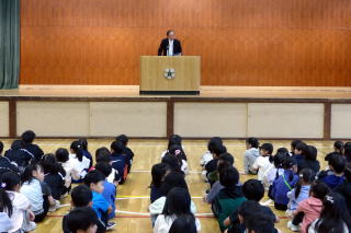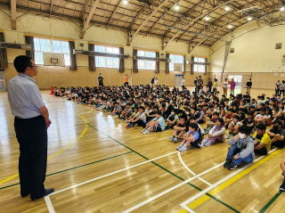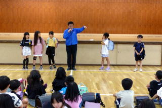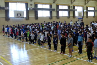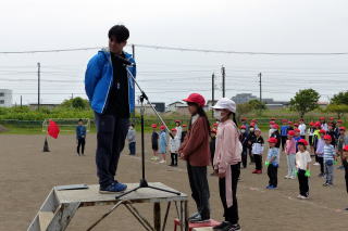 | 6月の全校朝会が行われました。校長先生のお話では、「まずは運動会に向けてそれぞれが目標を持って頑張りましょう!」と話されました。次に生徒指導担当の先生から6月の生活目標についてのお話がありました。6月の目標は「友だちとなかよくしよう」ということで、相手の気持ちを考えて、ルールを守って遊びましょうとのことでした。 | |||