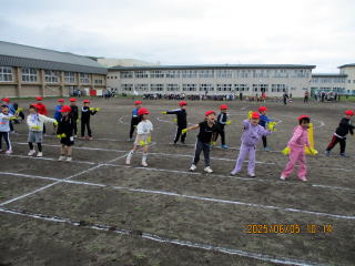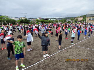 | 当初の予定から悪天候のため1日延期となりましたが、全体練習に引き続き、この日は「運動会総練習」が行われました。開閉会式の練習に加え、いくつかの競技も行い、係の動きや進行を確かめました。1年生の徒競走や、各学年の団体種目、低学年のリズム表現、紅白対抗リレーなどを行いました。閉会式ではこの総練習での各チームの得点発表が行われ、赤組が勝利しました。さて本番ではどうなるか楽しみですが、勝っても負けても、頑張っている人に、大きな声援と拍手を送っているところが素晴らしかったです。 | |||