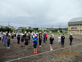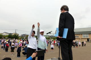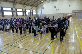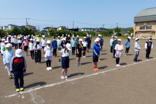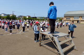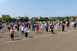 | 運動会特別日課もいよいよ後半に入り、この日は運動会全体練習の1回目が行われました。全学年児童がグランドに集まり、主に開閉会式の練習が行われました。練習では6年生を中心に、式の司会をしたり、優勝杯・準優勝杯返還や応援合戦、ラジオ体操などの練習が行われました。1回目ということでまだうまくできないところもありましたが、しっかり練習していきます。 | |||