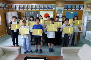 | 毎年6年生を対象に、歯科検診の結果から「よい歯」ということで表彰していただいております。今年は13名の児童が表彰されました。これからも歯を大切にしてください。 | |||