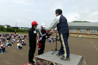 | 昨日に引き続き、この日も運動会全体練習が行われました。昨日の練習の成果があり、開閉会式の練習ではスムーズに行うことができてきました。練習をするたびに本番に向けてのやる気も上昇しているようです。練習が終わった後には、全員で石拾いを行い、安全に競技ができるよう自分たちでも整備をしました。 | |||