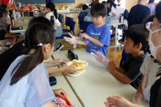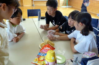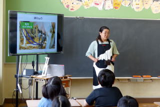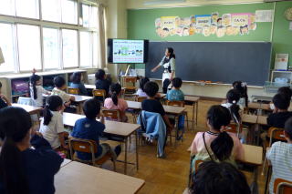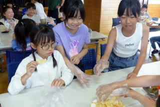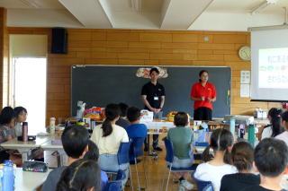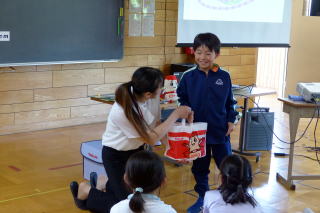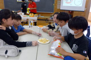 | 4年生が食育の授業を行いました。毎年、カルビー北海道から講師をお招きし「カルビースナックスクール」として学習しました。「1日のおやつの適切な量」「おやつはいつ食べるとよいのか」など、子どもたちの日常のおやつについての学習をしました。また「賞味期限」と「消費期限」の違いや、商品パッケージに記載の原材料名や、栄養成分表示についても教えていただきました。学習後にはおみやげでポテトチップスやフルグラもいただきました。ありがとうございました。 | |||