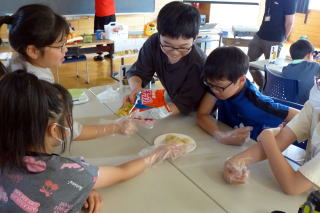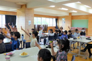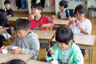 | 2年生の食育が行われました。今年も「明治」の方をお招きし、みるく教室「げんきがでるあさごはん」ということで、朝食の大切さを学びながら、自分の食事や生活をどのように変えていけばよいかを考え、実践につなげる学習でした。学習の終わりには、ヨーグルトをいただき、「飲むヨーグルト」に挑戦しました。出来上がったヨーグルトを飲んで、どの子もとっても満足そうでした。 | |||