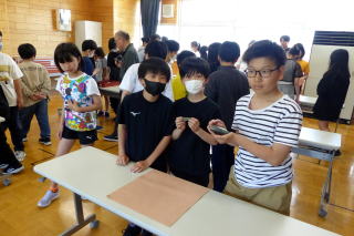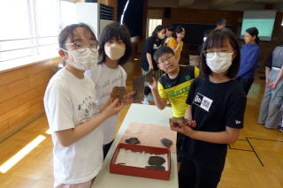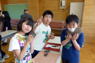 | 6年生の社会科の学習は歴史が中心となります。縄文~弥生時代の頃の北海道や登別の様子について学習し、遺跡から出た発掘品を実際に見たり触ったりして学習する「縄文出前講座」が行われました。今年も登別市の学芸員の菅野先生をお招きし、縄文人と弥生人の違いや貝塚について教えて頂きました。子ども達も、3000年以上も前に作られたものが、目の前にあり、実際に触れることに歴史のロマンを感じていました。 | |||