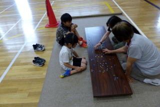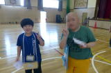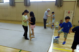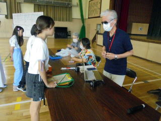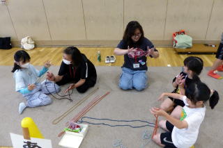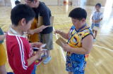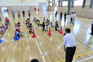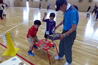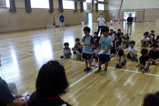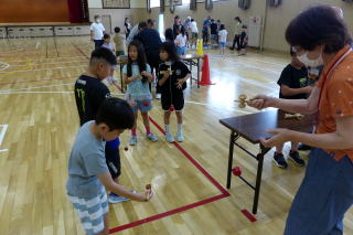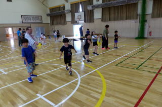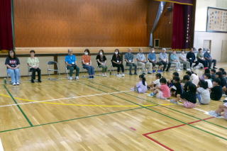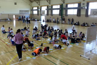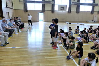 | 2年生の「世代間交流会」がこの日行われました。地域の方々15名と教育委員会の方々をお招きし、まずは2年生からのダンスを見てもらいました。運動会で踊ったダンスを、この日も元気いっぱいに体を動かして踊る姿に、地域の方からたくさんの拍手をいただきました。次に地域の方から昔の遊びについて教えてもらい、体験しました。竹馬、竹とんぼ、こまやけん玉、お手玉やおはじき、あやとりなど普段遊んでいるテレビゲームとは違いますが、子どもたちは面白さを見つけ、楽しんでいました。お越しいただいた地域の皆様、ありがとうございました。