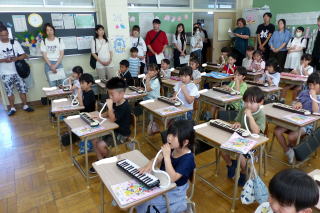 | 1学期末参観日が行われました。この日は1・2年生と特別支援学級1・2年の学級の参観日でした。今回の参観日では、1年生は「音楽」、2年生は「算数」の授業を見ていただきました。授業終了後は学級懇談やPTA学年レクも行われました。ご来校・ご参観ありがとうございました。 |