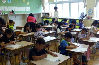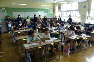 | 1学期末参観日の2日目は、3・4年生の参観日でした。すみれ・あおぞら学級の3・4年生も参観日でした。3年生は1・2組合同で「外国語活動」の様子を参観していただきました。4年生は算数の授業で「小数」についての学習でした。多くの保護者が来校し、授業を見ていただきました。ありがとうございました。