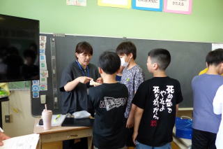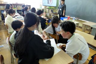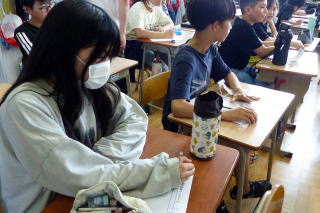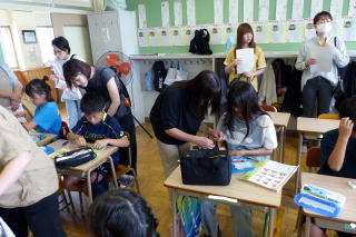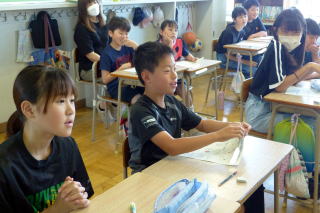 | 1学期末参観日の3日目最終日は、5・6年生の参観日でした。5年生は家庭科の裁縫の授業で、ボタン付けなどをお家の人に教わりながら実習しました。6年生は道徳「働くって どういうこと?」の学習を見ていただきました。グループで協力しながら学習を進める様子をしっかりとお家の方に見ていただくことができました。