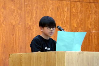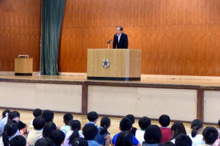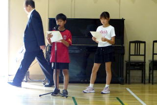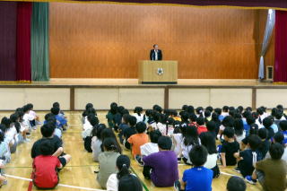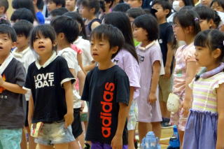 | 75日間あった1学期も今日が最終日。1学期のしめくくり「終業式」が行われました。最初に校長先生から「いろいろ頑張ったことが多かった1学期を自分でぜひ振り返ってみてください」というお話がありました。そして夏休みは「健康と安全」に気を付け、1)早寝・早起き・朝ごはんをしっかり守りましょう。2)お手伝いをしましょう。3)自分の命は自分で守りましょう。と3つのことを特に気を付けるよう話されました。また、2年生の代表児童と、なかよし会代表の児童が、1学期を振り返っての作文を朗読し、夏休みや2学期に向けての意気込みを発表しました。夏休みは8月26日(火)までの33日間、今年は例年より長い夏休みとなります。有意義に夏休みを過ごしてください。 |