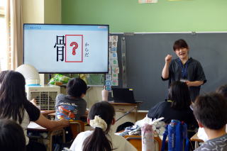 | 6年生の食育が行われました。6年生はからだの「骨」や「カルシウム」について学習しました。メグミルクの方を講師としてお招きし、クイズ形式で骨の仕組みや骨を作り出す栄養素カルシウムについて学び、「1日に必要なカルシウム量」を計算して、どのように食事を工夫すればよいか考えたり
