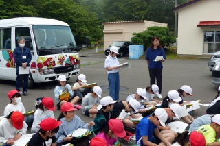 | 4年生が社会科の学習で市内の幌別ダム、郷土資料館とクリンクルセンターに行ってきました。幌別ダムでは普段はいることのできないダムの上を歩き、ダム湖の広さとその高さを感じました。
