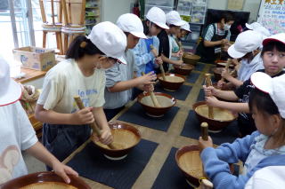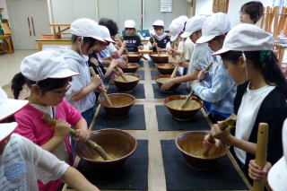 郷土資料館では、登別市の歩みや昔の道具について説明を受け、体験学習として、昔の道具を使った稲の脱穀、精米の体験をさせていただきました。また、クリンクルセンターでは、ごみ処理についてDVDを見て学習した後、施設内見学をさせていただきました。実際に見たり、やってみたりする体験は本当に貴重な学習です。