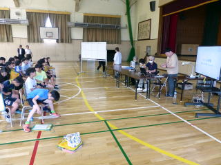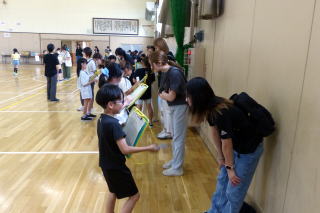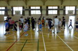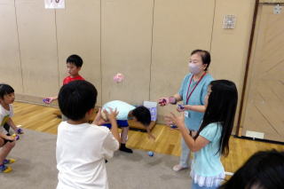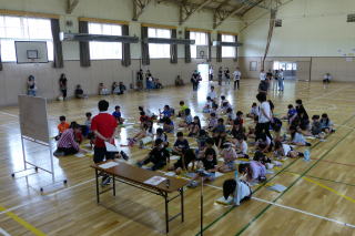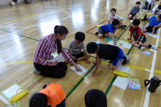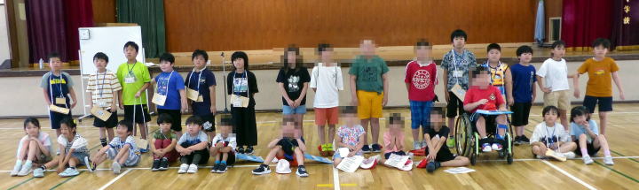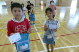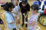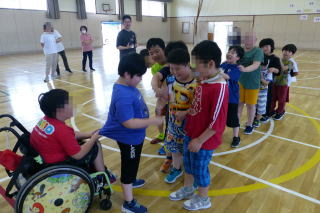 | 登別市内小学校の特別支援学級の児童が交流を深める合同学習の今年度1回目が行われました。今年度は市内全小学校での交流ではなく、中っ校区ごとの交流ということで、鷲別小学校の特別支援学級児童との交流でした。鷲別小学校の児童に本校の体育館に来ていただき、様々なレクレーションゲームを行いました。自己紹介ゲームでは、他校のお友達に名刺を渡し、互いに自己紹介をして、何人もの人とお友達になりました。数合わせゲームやじゃんけん列車など、楽しく交流することができました。交流の最後には、それぞれの学校の校歌を歌って紹介し合いました。次回は9月に登別時代村での市内全小学校の特別支援学級のお友達との交流が行われます。 |