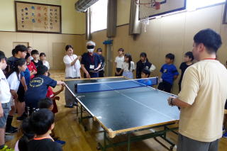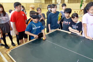 | 5年生の総合的な学習「福祉」についての学習が行われました。1回目の今回は「視覚障がい」の方を招いての学習でした。目が不自由でも、サポートしてくれる様々な道具を使うことで生活がしやすくなること、また訓練したりすることで、多くのことができるようになることなどを教えていただきました。包丁を使って調理する様子を見せていただいたり、ブラインド卓球を体験したりすることができました。 |