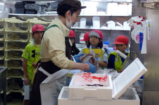 | 3年生が社会科の学習で校区内にある「コープさっぽろ・しがイースト店」の見学に行きました。商品を売るために建物や商品の並べ方の工夫について説明を聞いたり、普段入ることのできないバックヤードにも入れてもらい中の様子を見ることができました。またグループごとに店内で買い物しているお客さんにいろいろと質問したりもしました。短い時間でしたがしっかり学習できました。コープさっぽろの皆さん