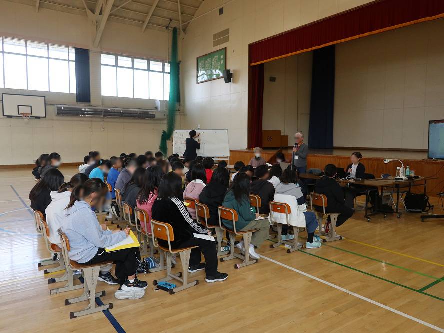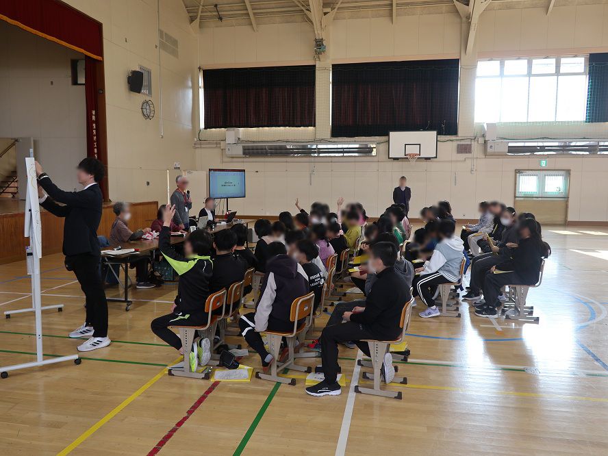 11月6日(木)に、5年生を対象に総合的な学習で福祉出前講座が行われました。視覚障がいをもつ方々を学校にお招きし、障がいについてのお話や生活の工夫などについて教えていただきました。学習では子どもたちがアイマスクをしてブラインド卓球に挑戦したり、視角障がいをもつ方々の介助の仕方を学んだりして、目の見えないことの大変さやどのような手助けが必要なのかを身をもって体験することができました。子どもたちが事前に調べて学習していた以外のお話もたくさん話していただき、子どもたちは真剣にメモをとっていました。今回の出前授業の講義や体験をもとに、これから5年生は福祉について学びを深めていきます。