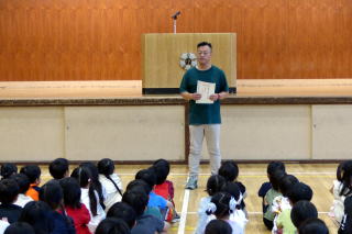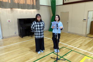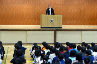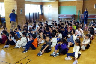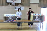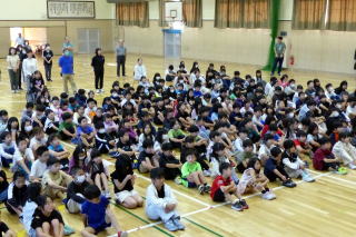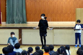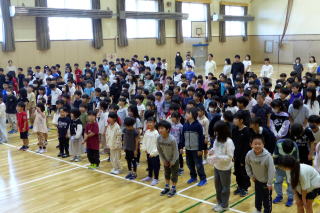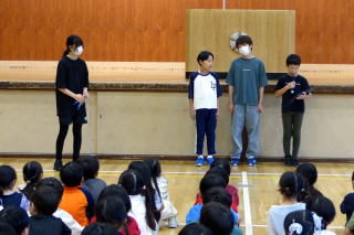 10月の全校朝会が行われました。校長先生のお話の後、体育委員会から、短縄記録会のお知らせがありました。実際になわとびの実演を行い、記録会について説明しました。その後、2人の先生から、学習のきまりと10月の生活目標についてお話がありました。 |