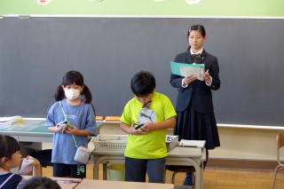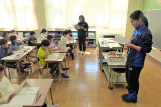 登別明日中等教育学校の4回生が2日間、本校にインターンシップ体験ということで来校し、教師の職業体験を行いました。主に2年1組の教室と養護教諭業務の体験ということで、教師の仕事を見学したり、先生となって子どもたちに指示したり、一緒になって活動したり遊んだりしました。子どもたちも高校生の先生が来てくれてとても喜んでいました。この経験をぜひとも今後に生かして頂けたらと願います。