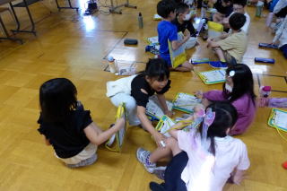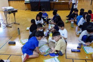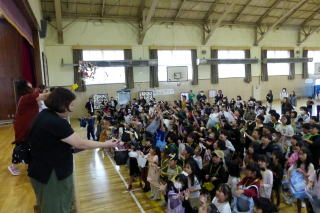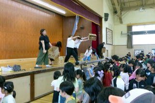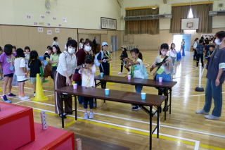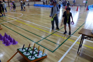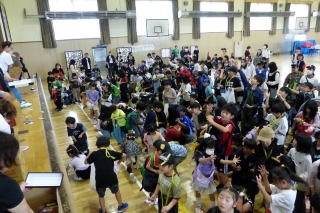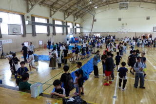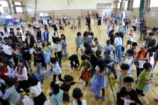 。多くの子どもたちが来場し、それぞれのゲームを楽しみました。祭りの最後には、「お菓子まき」が行われ、ステージ上からたくさんお菓子がまかれました。その中には大当たりのお菓子があり、「カップ焼きそばの箱詰め」「アイスクリーム・ハンバーガーの食事券」など、当たった児童は大喜びでした。た。実行委員の方をはじめ、多くの方々にご協力をいただきました。誠にありがとうございました。 |