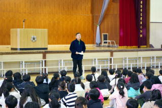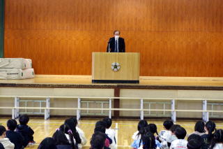 | 11月の全校朝会が行われました。校長先生のお話では、学習発表会に向け、友だちと協力してしっかり取り組みましょうと話されました。また、なかよし会の図書委員会と学級委員会から連絡がありました。最後に生徒指導担当の先生から11月からの帰宅時刻と11月の生活目標について説明がありました。11月も元気にそして落ち着いて、学校生活を送りましょう。 | |||