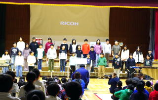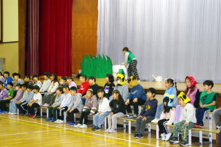 | 学習発表会の児童公開が行われました。各学年とも1回目の本番ということで、緊張の中にも、これまで頑張って練習してきた成果を見せようと、やる気満々で発表に臨みました。発表している児童だけでなく、見ている児童も、集中して観覧していました。また、幼小連携事業として、リリー文化幼稚園の年長組の園児さんが来校し、5・6年生の発表を見ていきました。さあ、週末土曜日には、いよいよお家の人に見ていただく保護者公開、もうひと踏ん張り頑張りましょう! | |||