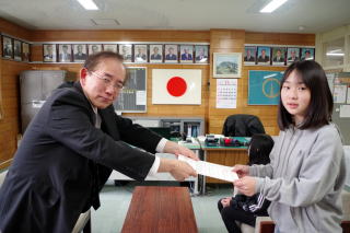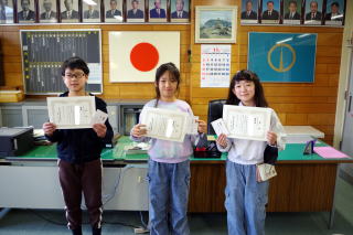| 毎年6年生を対象に行われている「税に関する標語コンクール」で本校から2名の児童が入賞し、校長室で賞状が手渡されました。標語作品も紹介します。 | |||