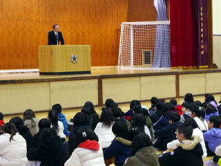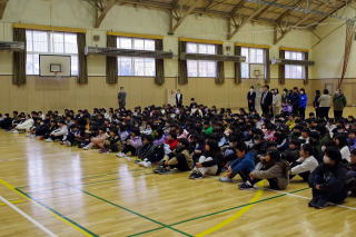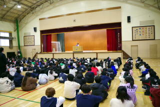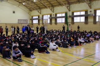 | 18日間といつもの年より短かった冬休みも終わり、今日から3学期のスタートです。2校時目に3学期始業式が行われました。少し体育館の中は寒かったですが、寒さに負けず元気に校歌を歌いました。校長先生の話では、1年のスタートにあたり、しっかりと目標を立てて、今年の干支である馬のようにしっかり向く票に向けて走り続けてくださいとのことでした。児童代表の発表では、4年生の児童が冬休みに頑張ったことと、3学期の目標を作文に書き、はきはきと発表しました。なかよし会代表の話では、各学年ごとに3学期に頑張ってほしいことを伝えていました。3学期は、1~5年生は48日、6年生は46日間です。短い学期ですが、有意義に学校生活を送りましょう!