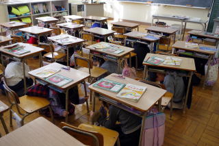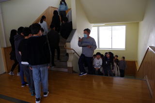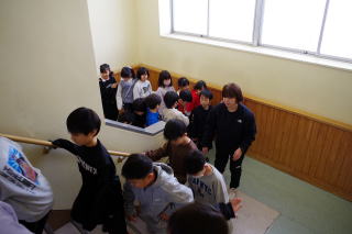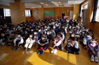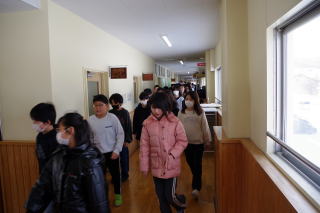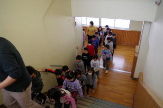 | この日の中休みに津波対応のシェイクアウト訓練が行われました。大地震の後に津波警報が発令されたという想定で、全員が校舎3階の図書室、多目的ルームに分かれて避難する訓練でした。みんな素早い行動で、避難指示の放送から5分程度で避難完了できました。いつ災害が起きても対応できるよう今後も訓練をしていきます。 |