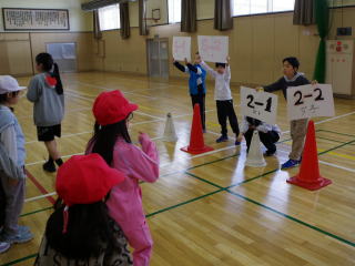 | なかよし会の体育委員会が主催の学年交流リレー大会が行われました。この日は、中休みに1・3年生、昼休みに4・6年生のリレーが行われました。クラス別に合同のチームが作られ、下の学年からクラス全員が走り、続いて上の学年にバトンタッチをして、ゴールを目指します。体育館を周回するのでコーナーでの走りがカギとなります。みんな全力で走り、各チームからの応援の声も大きく大変盛り上がりました。勝っても負けても楽しく競技できたのが何よりです。 |