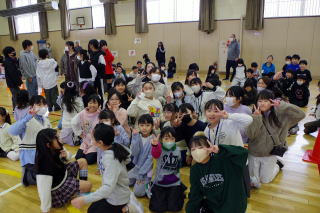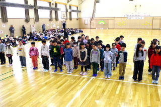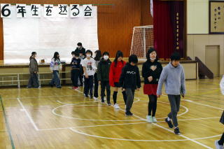 | これまでお世話になった6年生に感謝の気持ちを伝えようと、なかよし会の学級代表委の5年生が中心となって「6年生を送る会」が実施されました。6年生入場の後、1年生から順に発表を行いました。1年生は「昔の写真クイズ」6年生が1年生の時の写真を出題し、それはだれかを当てるクイズでした。2年生は「合唱」、きれいな歌声を6年生に送りました。3年生は「ダンスクイズ」過去に流行ったダンスをクイズ形式で踊ってくれました。4年生は「6年生の担任の先生クイズ」6年生の先生のすきな給食やアニメをクイズにして紹介してくれました。5年生は、6年生に挑戦ということで。「人集めゲーム」お題にあった人を、どちらが多く集められるかを競いました。接戦の末、6年生が見事勝利しました。最後に6年生からの発表は、6年生の思い出をスライドにし、クイズにして出題しました。修学旅行に関するクイズが多かったです。発表の後には、なかよし会の引継式が行われ、児童会旗と、6年生が製作した雑巾が、5年生に手渡されました。短い時間でしたがとても盛り上がり楽しい時間となったことと合わせ、6年生だけではなく在校生や先生方も卒業という意識が更に高まってきました。 | |||