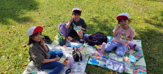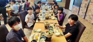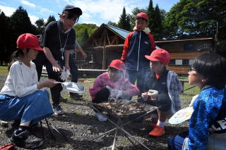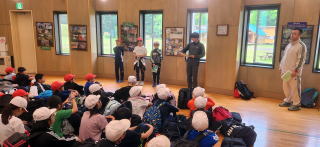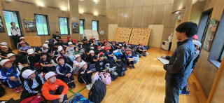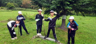 9月9日(火)・10日(水)の2日間、5年生が登別市鉱山町の「ふぉれすと鉱山」でふれあい合宿(宿泊学習)を行いました。 天気も晴れ間が見え、外での活動にはちょうど良い天気です。玄関前で出発式を行った後、予定通り学校を出発しました。ふぉれすと鉱山に到着して最初の活動は施設周辺を散策しながら設置されているクイズを解いていく「ネイチャーウォークラリー」です。施設周辺に6つのクイズが隠されており、グループごとに散策しながらクイズを見つけていました。昔の鉱山町の様子に関する問題が多く、なかなか難しかったようです。昼食を食べ、午後のプログラム「リバートレッキング」にチャレンジしました。コースはレベルに合わせて3つのコースに分かれ、目的地を目指しました。水温も思ったほど冷たくなく、全身びしょぬれになりながら川遊びを楽しみました。夕食後、「ナイトハイク」ということで、夜の施設周辺の森の中を散策。暗闇の中で生活する動物になったような気持ちで歩いてきました。こうもりが飛んでいるのも見ることができました。 2日目も1日目と同様、良いお天気となりました。ホールでラジオ体操を行った後、朝食を食べました。その後、この日のプログラム「たき火選手権」枯れ枝を見つけ火おこしをしていきますが、かなり苦労しました。でもどの班も何とか火をおこし、マシュマロを焼いて食べました。施設で給食を食べた後、活動の振り返りを行い帰校しました。自然の中、友達みんなで宿泊し、一緒に活動することで、なんとなく学年の一体感がさらに深まった気がします。こんどは6年生での修学旅行に向け、引き続き、頑張っていきましょう。 |