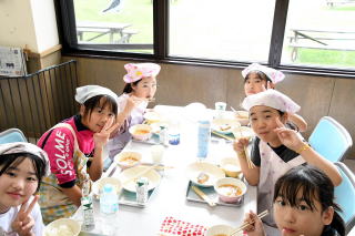 <日程1日目> <日程2日目> 8:20 出発式 6:30 起床・洗顔 8:30 学校出発 6:45 ラジオ体操 9:00 ふぉれすと鉱山到着 7:30 朝食・部屋片付け・荷物整理 9:10 入所式 9:30 プログラム4「たき火選手権」 10:00 プログラム1 「ネイチャーウォークラリー」 12:00 昼食(給食) 11:30 昼食(弁当) 13:00 個人のまとめ 12:30 リバートレッキング準備 13:30 退所式 13:00 プログラム2 14:00 ふぉれすと鉱山出発 「リバートレッキング」 14:30 学校到着 プログラム終了後、シャワー 14:35 解散式 16:30 休憩・自由時間 14:40 解散・下校 17:30 夕食 18:30 プログラム3 「ナイトハイク」 19:30 入浴・1日の反省 21:30 翌日の準備・就寝準備 22:00 就寝・消灯 |