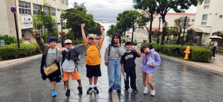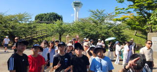 6年生の修学旅行が終わりました。現地の天候が心配されるところですが、これからの1泊2日の旅行への期待が高まる中、出発式が行われました。多くの保護者に見送られ、元気いっぱいにバスに乗り込みました。函館までの途中は雨も降ったりやんだりの天候でした函館について最初のプログラムは「函館市内での自主研修」です。。自主研修は金森倉庫群を出発し、まずはどのグループも「昼食」を取りました。今年はほとんどが定番のハンバーガーを食べるグループでした。途中から雨も降りだしましたが、食事後、今度は施設見学。教会や記念館や資料館など、自分たちで立てた計画に沿って見学を進めました。見学の途中から雨もあがり、しっかりと見学することができました。その後、本日の宿泊先「イマジンリゾートホテル」に入館し、夕食をいただきました。日中の見学でかなりおなかが空いたのか、みんな食欲旺盛でしっかりとおいしくいただきました。夕食の後は、いよいよ「函館山夜景見学」です。当初はロープウェイウェイで三兆に行く予定でしたが、残念ながら強風のため運行休止で、バスで山頂に向かいました。夜景が見られるか微妙な天気でしたが、奇跡的?にもきれいな夜景を見ることができました。そして山頂で記念写真撮影を行いました。思い出の一枚となる写真を撮ることができました。とにかく夜景が見れて子どもたちも満足していました。この後ホテルに戻り、温泉に浸かり、就寝しました。日中暑い中歩き回りましたので、割とみんなぐっすりと寝付いたようです。 2日目は五稜郭公園へ移動。公園内を散策し、記念撮影。箱館奉行所や五稜郭タワーを見学しました。タワーから見た五稜郭の星形の形に、歓声が上がるほどでした。昼食は焼肉バイキングをいただきました。ここでも注文が追い付かないほどみんなたくさん食べていました。そして修学旅行最後の活動は、金森倉庫群に戻っての買い物。お家の方々へのお土産はもちろん、自分のお気に入りの品物を買って、満面の笑みで集合場所へ戻ってきました。函館が名残惜しい気持ちと、早く家に帰りたい気持ち半々で、無事に帰路につきました。6年生にとっては、本当に心に残る修学旅行になりました。 |