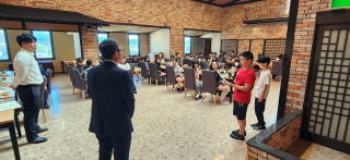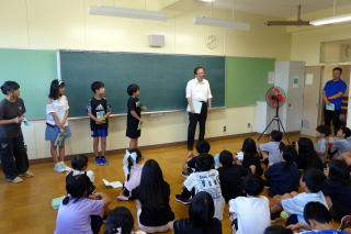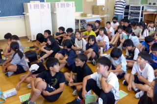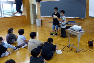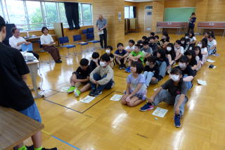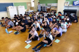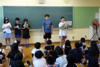 5年生が、翌日の9月9・10日に行われる「ふれあい合宿」の結団式を行いました。 「自然や友達と仲良くしながら、自然を学ぼう」をテーマに、実行委員を中心にできるだけ自分たちの力で準備を進めてきました。結団式では、テーマやきまりなどを再確認し、明日からの活動に向けて、気持ちを高めていました。 | |||