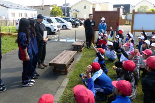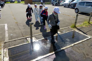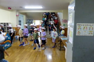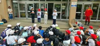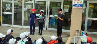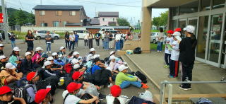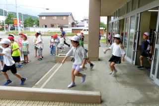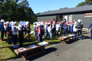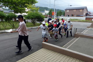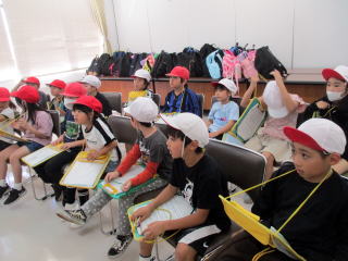 今年度2回目の避難訓練は、地震と津波を想定した訓練が行われました。初めに大きな地震が起こったと想定し、教室内で机の下に身をかがめ、揺れがおさまってから、まずはグラウンドに避難しました。さらに大津波警報発令を想定し、グラウンドから高台の津波時避難場所に移動避難しました。訓練のため途中、道路の横断では時間がかかりましたが、一刻も早く避難できるよう、どの子も真剣に避難しておりました。 | |||