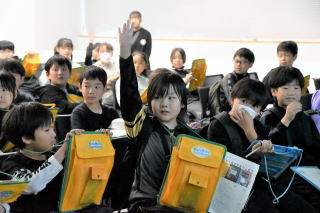 文化庁の日本芸術文化振興会が毎年、全国で優れた舞台芸術を鑑賞する機会を巡回公演で提供しており、登別市でも市内の小学校6年生を対象に毎年行っております。今年は古典落語「井戸の茶碗」を基にした「くず~い 屑屋でござい」という芝居を鑑賞しました。 幌別小学校の6年生がワークショップ体験対象校として、劇団の方に実際に演技を教わり、本番では舞台の上で演じました。本校の6年生も内容の面白さに、しっかりと見入っていました。(著作権の関係で演目の写真はありません) | |||